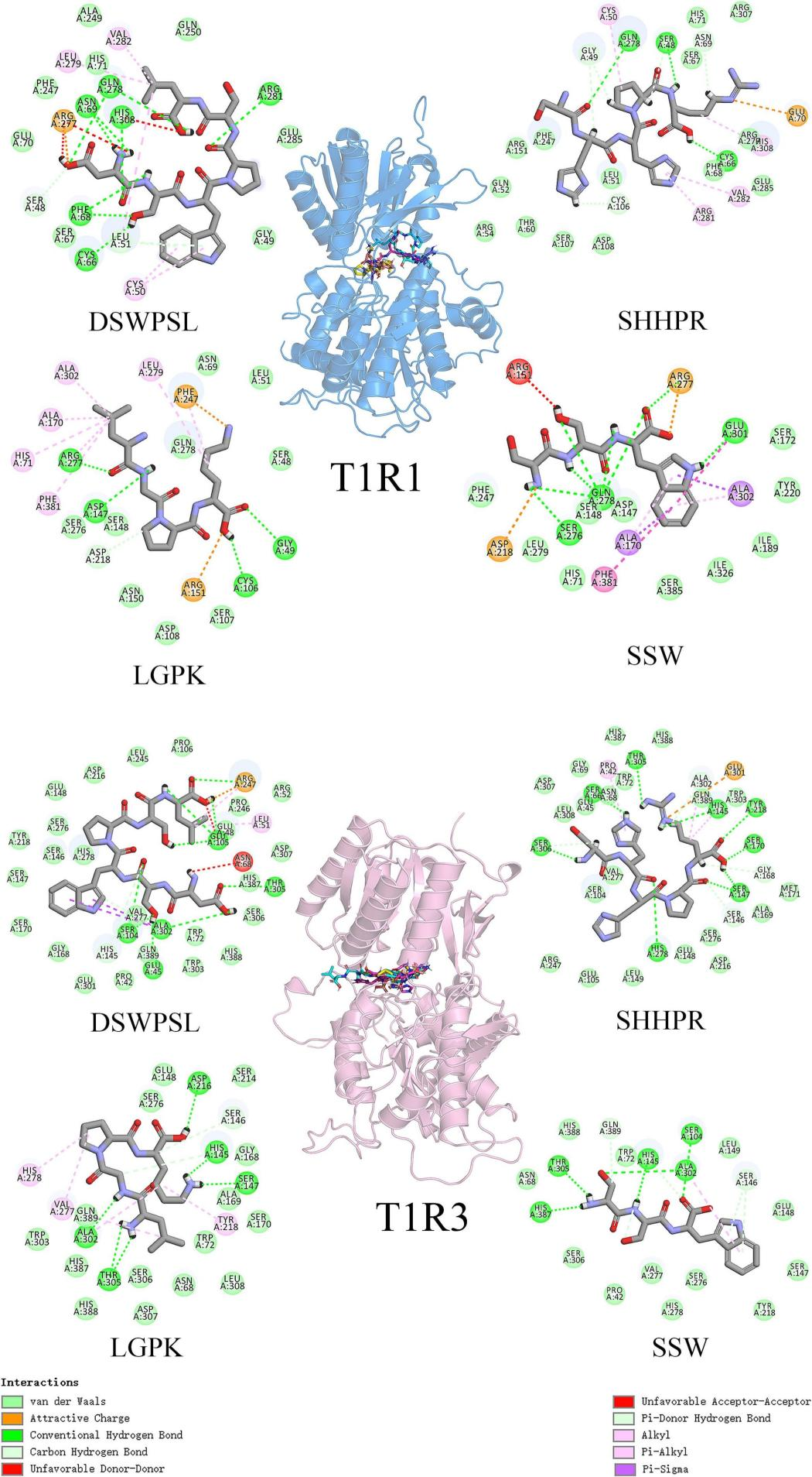 图1:大豆鲜味肽与蛋白质结合位点的接触残基和相互作用